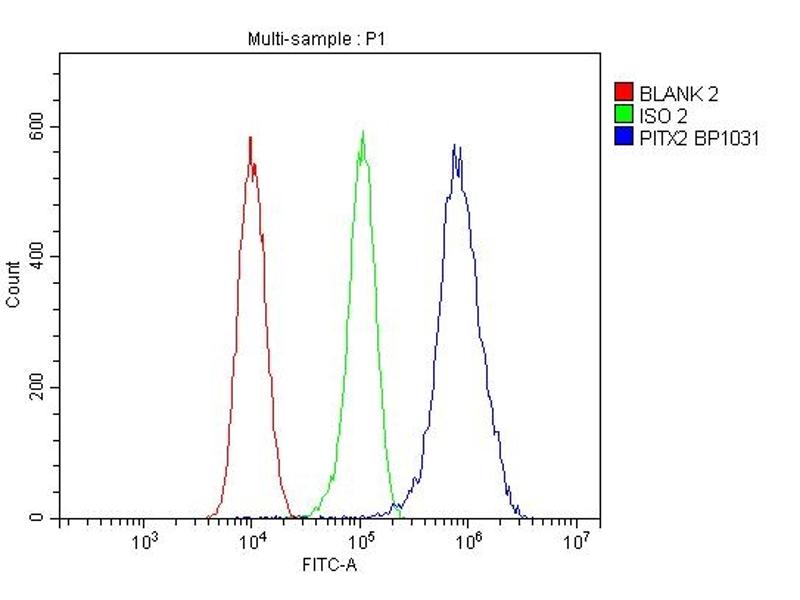 Background: Paired-like homeodomain transcription factor 2?also known as?pituitary homeobox 2?is a?protein?that in humans is encoded by the?PITX2?gene. It is mapped to 4q25. This gene encodes a member of the RIEG/PITX homeobox family, which is in the bicoid class of homeodomain proteins. The encoded protein acts as a transcription factor and regulates procollagen lysyl hydroxylase gene expression. This protein plays a role in the terminal differentiation of somatotroph and lactotroph cell phenotypes, is involved in the development of the eye, tooth and abdominal organs, and acts as a transcriptional regulator involved in basal and hormone-regulated activity of prolactin. Mutations in this gene are associated with Axenfeld-Rieger syndrome, iridogoniodysgenesis syndrome, and sporadic cases of Peters anomaly. A similar protein in other vertebrates is involved in the determination of left-right asymmetry during development. Alternatively spliced transcript variants encoding distinct isoforms have been described.