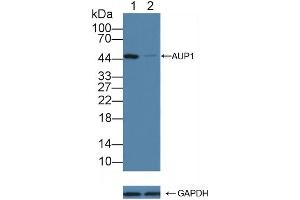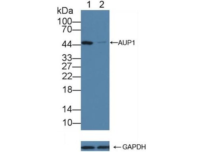 - The antibody is a rabbit polyclonal antibody raised against AUP1. It has been selected for its ability to recognize AUP1 in immunohistochemical staining and western blotting.