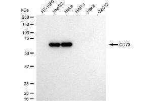 The Rabbit Monoclonal anti-CD73 antibody has been validated for WB and FACS. It is suitable to detect CD73 in samples from Human.