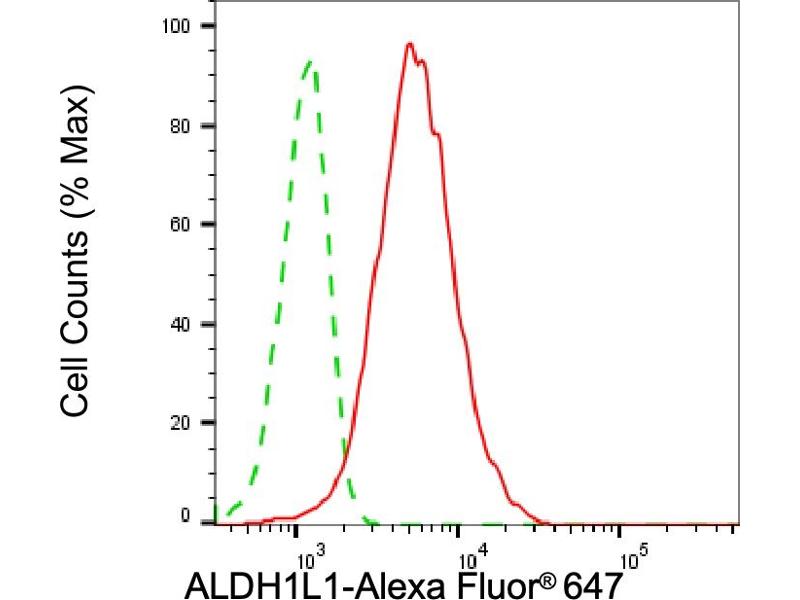 The Mouse Monoclonal anti-ALDH1L1 antibody is suitable to detect ALDH1L1 in samples from Human. It has been validated for WB and FACS.