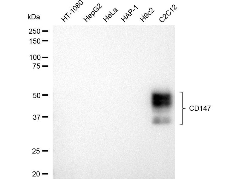 The Rabbit Monoclonal anti-CD147 antibody has been validated for WB and FACS. It is suitable to detect CD147 in samples from Mouse.