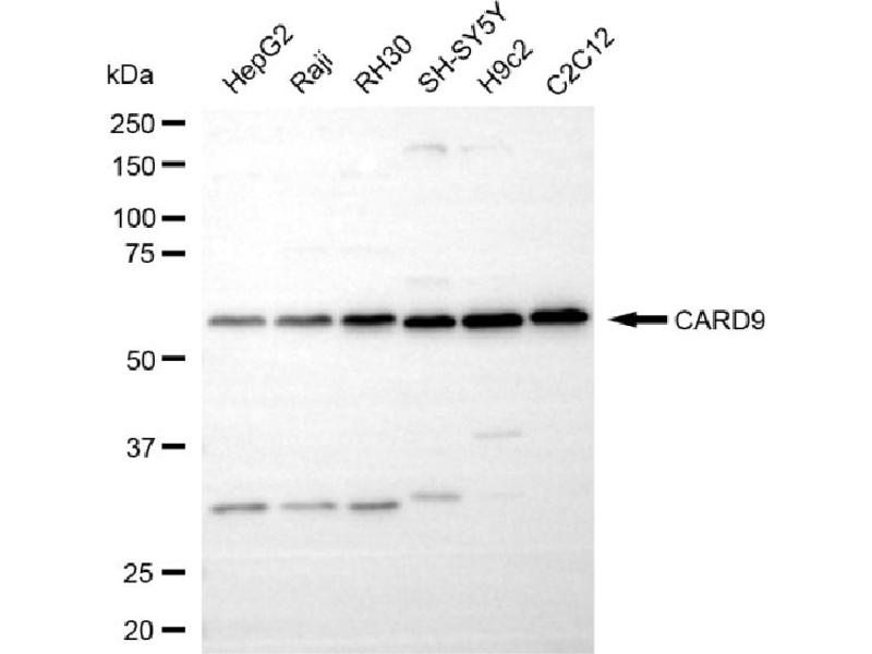 This Rabbit Monoclonal antibody specifically detects CARD9 in WB and FACS. It exhibits reactivity toward Human.