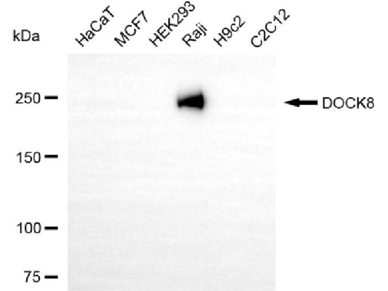 This Rabbit Monoclonal antibody specifically detects DOCK8 in WB and FACS. It exhibits reactivity toward Human.
