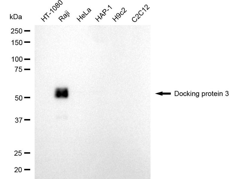 The Mouse Monoclonal anti-DOK3 antibody is suitable to detect DOK3 in samples from Human. It has been validated for WB and FACS.