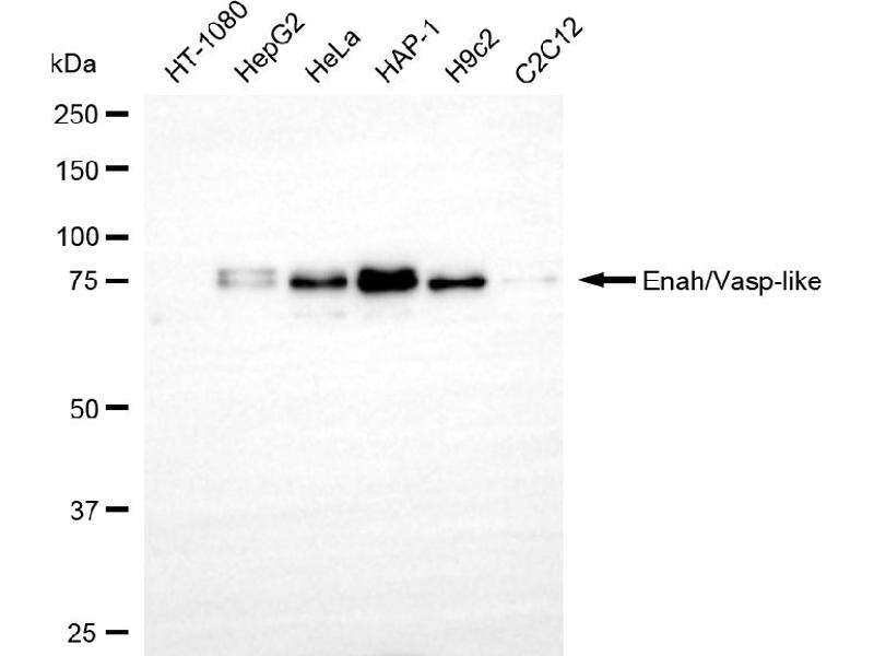 The Rabbit Monoclonal anti-EVL antibody is suitable to detect EVL in samples from Human. It has been validated for WB and FACS.