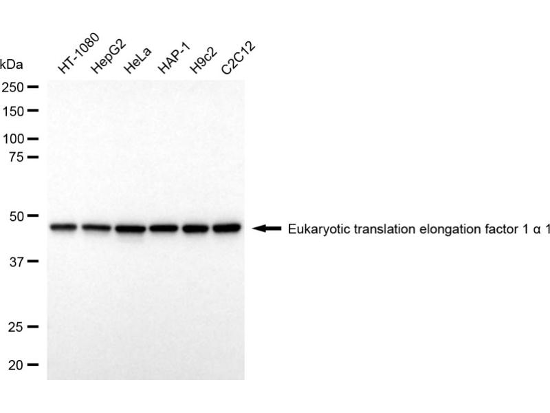 This anti-eEF1A1 antibody is a Rabbit Monoclonal antibody detecting eEF1A1 in WB and FACS. Suitable for Human.