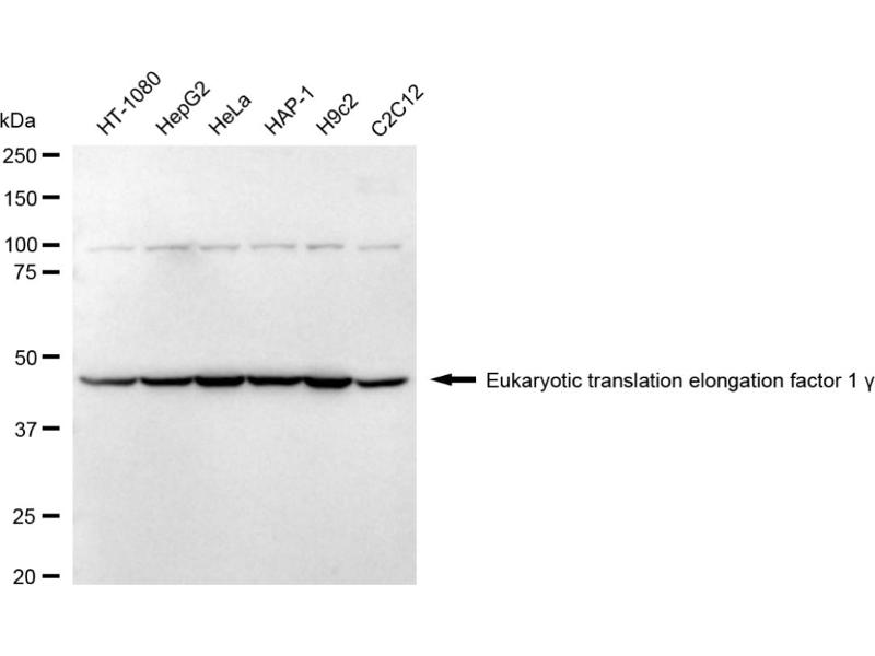 The Rabbit Monoclonal anti-EEF1G antibody is suitable to detect EEF1G in samples from Human. It has been validated for WB and FACS.