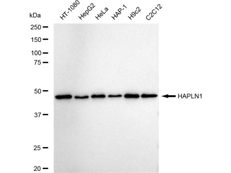 The Rabbit Monoclonal anti-HAPLN1 antibody (Clone 23GB6520) (ABIN7799008) specifically detects HAPLN1 in WB, FACS and ICC.