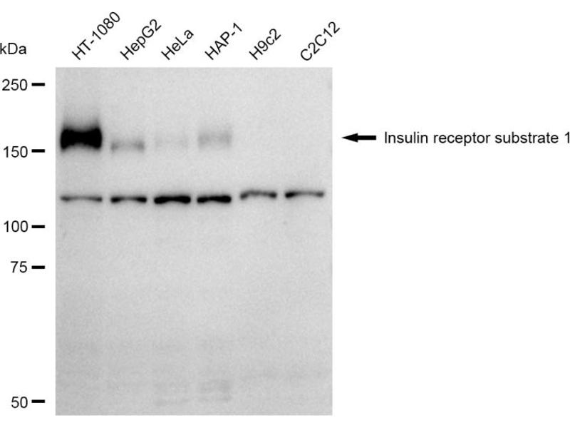 The Rabbit Monoclonal anti-IRS1 antibody has been validated for WB, FACS and ICC. It is suitable to detect IRS1 in samples from Human.