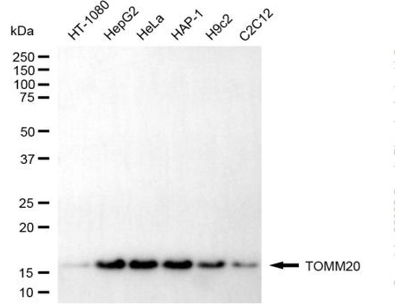The Mouse Monoclonal anti-TOMM20 antibody is suitable to detect TOMM20 in samples from Human. It has been validated for WB and FACS.