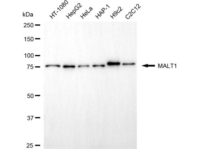 The Mouse Monoclonal anti-MALT1 antibody has been validated for WB. It is suitable to detect MALT1 in samples from Human.