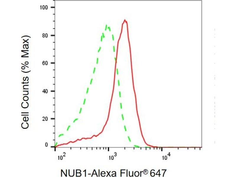 The Mouse Monoclonal anti-NUB1 antibody is suitable to detect NUB1 in samples from Human. It has been validated for WB and FACS.