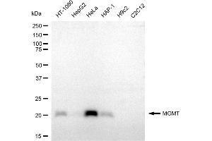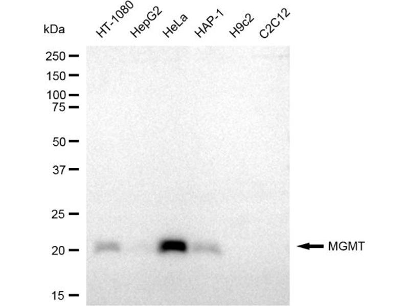 The Rabbit Monoclonal anti-MGMT antibody has been validated for WB and FACS. It is suitable to detect MGMT in samples from Human.