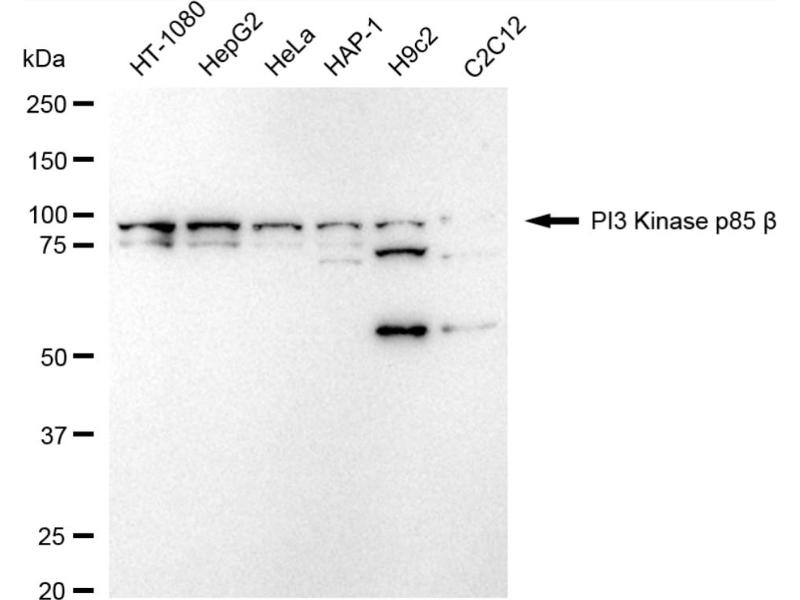 The Rabbit Monoclonal anti-PIK3R2 antibody is suitable to detect PIK3R2 in samples from Human. It has been validated for WB and FACS.
