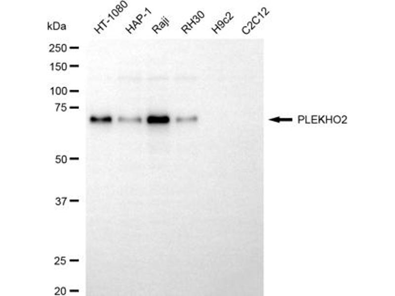 This Mouse Monoclonal antibody specifically detects PLEKHO2 in WB. It exhibits reactivity toward Human.