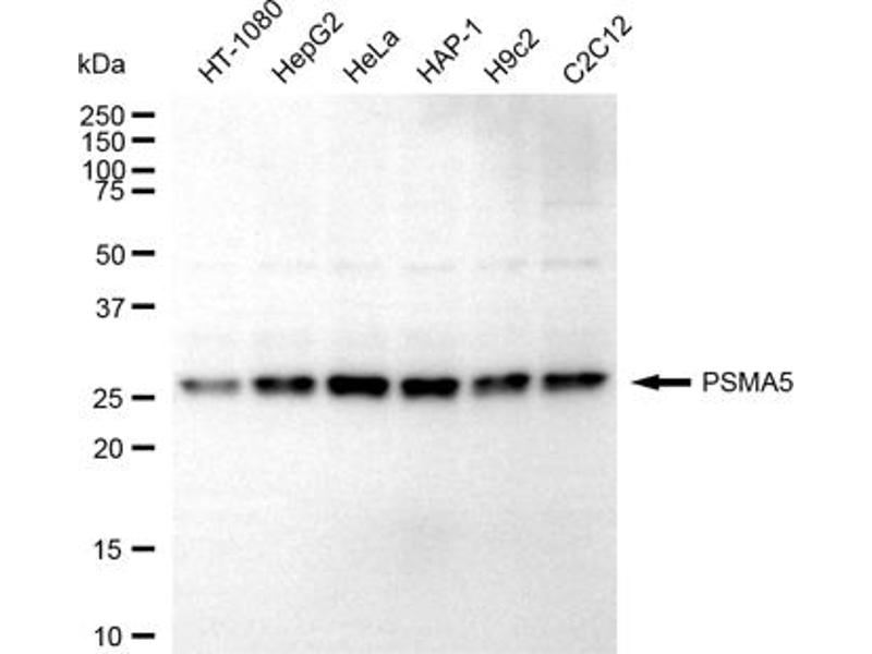 The Mouse Monoclonal anti-PSMA5 antibody has been validated for WB and FACS. It is suitable to detect PSMA5 in samples from Human.