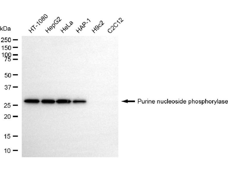 The Rabbit Monoclonal anti-PNP antibody (Clone 25GB1600) (ABIN7800067) specifically detects PNP in WB and FACS.