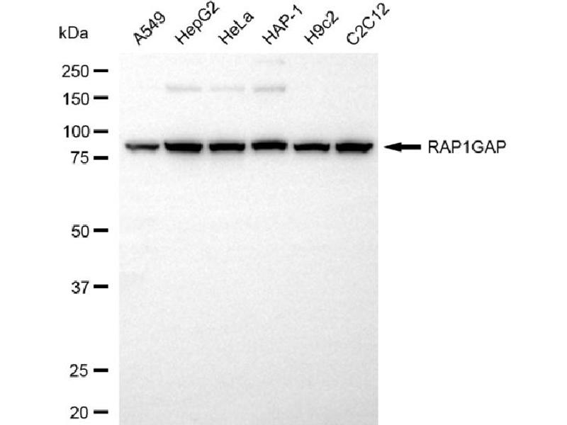 The Rabbit Monoclonal anti-RAP1GAP antibody is suitable to detect RAP1GAP in samples from Human. It has been validated for WB and FACS.