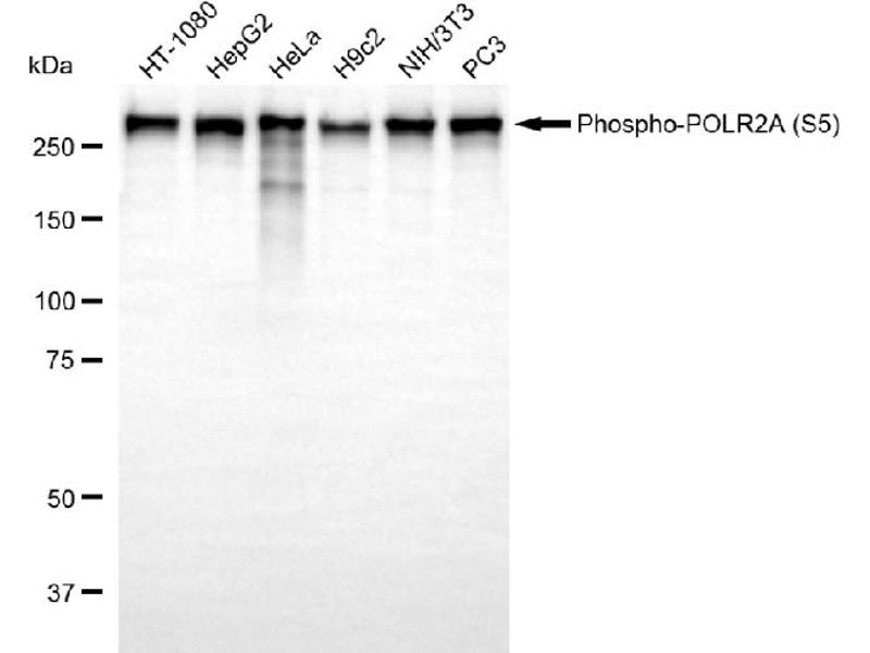 The Rabbit Monoclonal anti-POLR2A/RPB1 antibody has been validated for WB. It is suitable to detect POLR2A/RPB1 in samples from Human.
