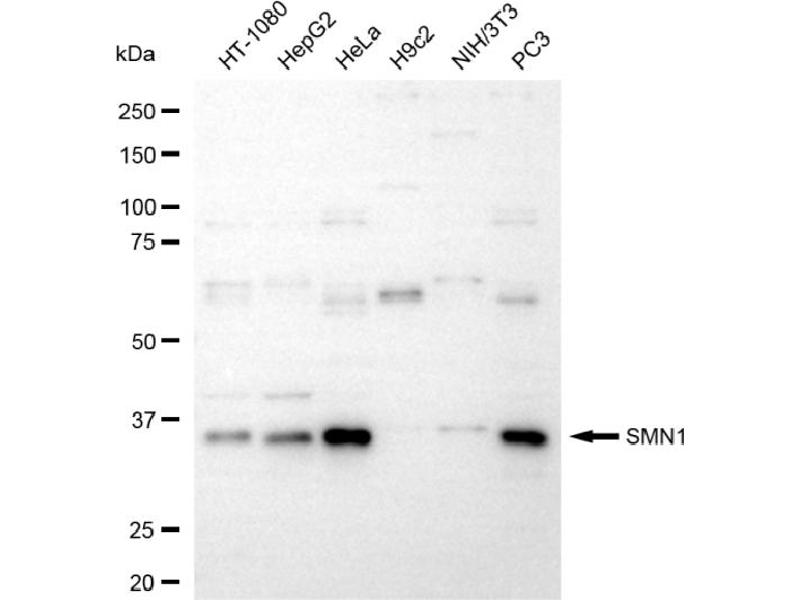 The Rabbit Monoclonal anti-SMN1 antibody has been validated for WB and FACS. It is suitable to detect SMN1 in samples from Human.
