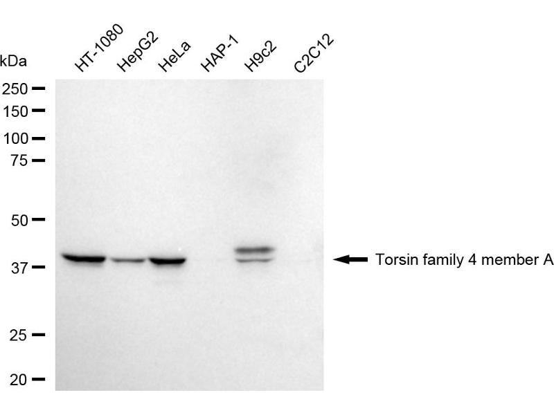 The Rabbit Monoclonal anti-TOR4A antibody has been validated for WB. It is suitable to detect TOR4A in samples from Human.
