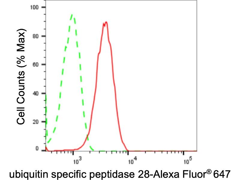The Rabbit Monoclonal anti-USP28 antibody (Clone 24GB2515) (ABIN7800733) specifically detects USP28 in WB and FACS.