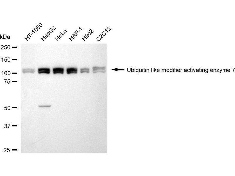 The Rabbit Monoclonal anti-UBA7 antibody has been validated for WB and FACS. It is suitable to detect UBA7 in samples from Human.