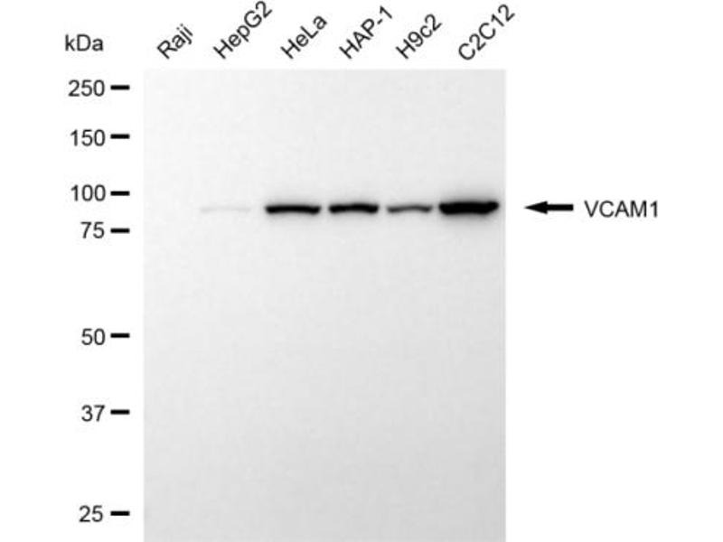 The Mouse Monoclonal anti-VCAM1 antibody has been validated for WB. It is suitable to detect VCAM1 in samples from Human.