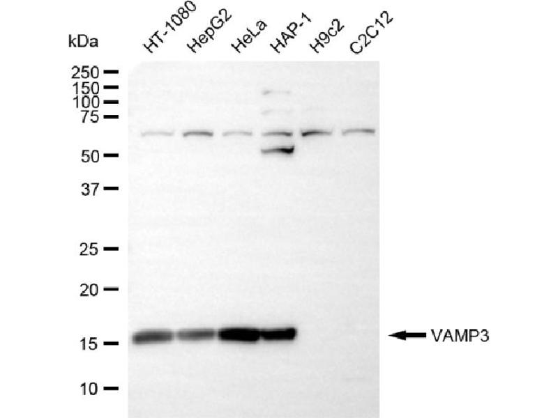 The Rabbit Monoclonal anti-VAMP3 antibody is suitable to detect VAMP3 in samples from Human. It has been validated for WB and FACS.