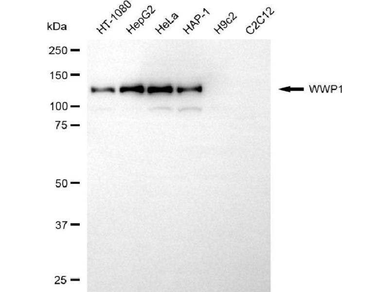 The Mouse Polyclonal anti-WWP1 antibody is suitable to detect WWP1 in samples from Human. It has been validated for WB and FACS.