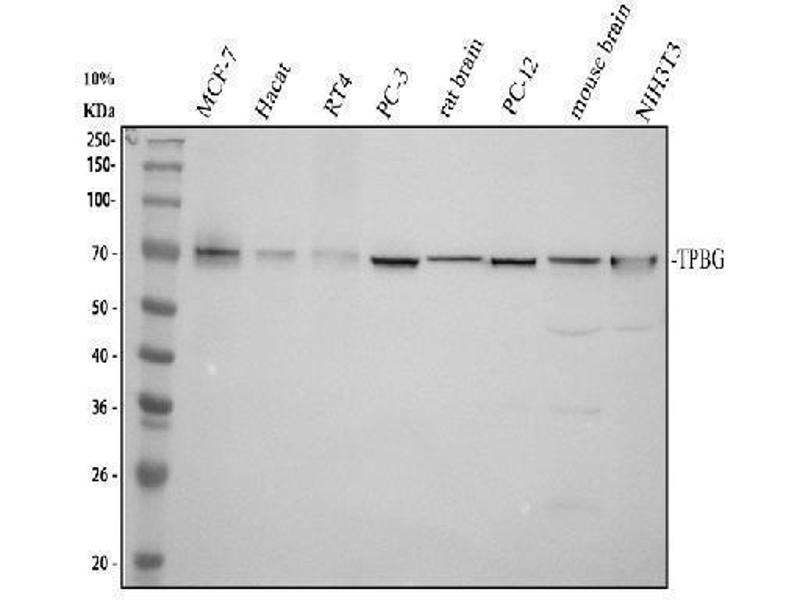 Anti-TPBG Antibody catalog # A07442-1. Tested in WB, ELISA applications. This antibody reacts with Human, Mouse, Rat. This is a premium antibody that guarantees superior quality, high affinity, and strong signals with minimal background in Western blot applications.