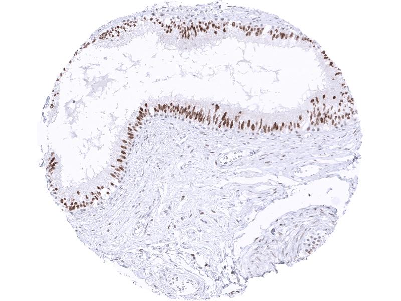 Negative Control: Colon: TFE3 staining should be absent in epithelial cells (some very faint staining can occasionally occur at the surface).