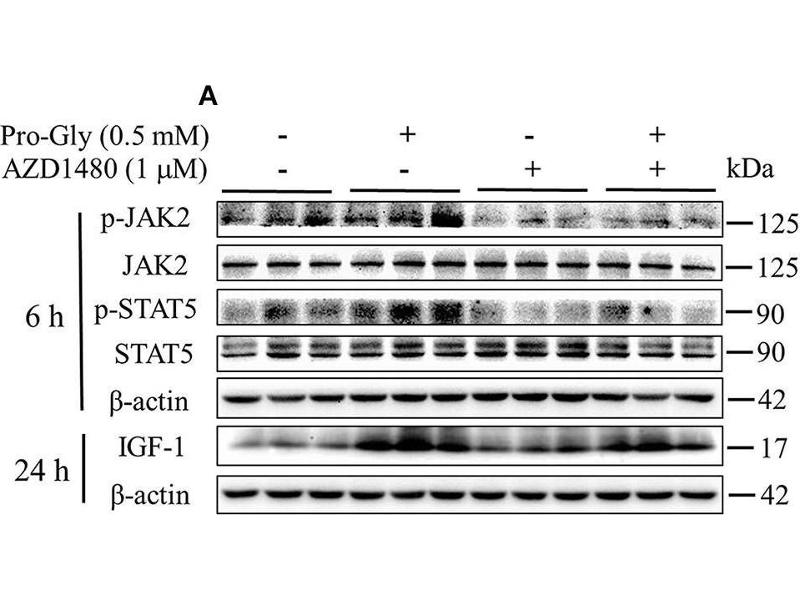 Background: JAK2 (Janus Activating Kinase 2) is a tyrosine kinase of the non-receptor type, that associates with the intracellular domains of cytokine receptors, JAK2 is the predominant JAK kinase activated in response to several growth factors and cytokines such as IL-3, GM-CSF and erythropoietin, it has been found to be constitutively associated with the prolactin receptor and is required for responses to gamma interferon. Ligand binding to a variety of cell surface receptors (e.g., cytokine, growth factor, GPCRs) leads to an association of those receptors with JAK proteins, which are then activated via phosphorylation on tyrosines 1007 and 1008 in the kinase activation loop. Activated JAK proteins phosphorylate and activate STAT (signal transducers and activators of transcription) proteins, which then dimerize and translocate to the nucleus. Once in the nucleus, STAT proteins bind to DNA and modify the transcription of various genes.