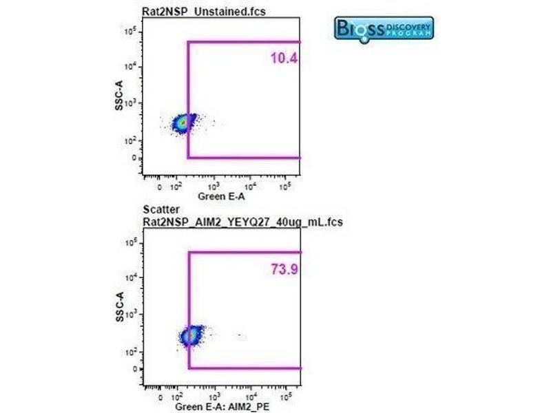 The Rabbit Polyclonal anti-AIM2 antibody has been validated for WB, ELISA, FACS, IF (cc), IF (p), IHC (p) and IHC (fro). It is suitable to detect AIM2 in samples from Human, Mouse and Rat.