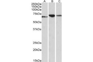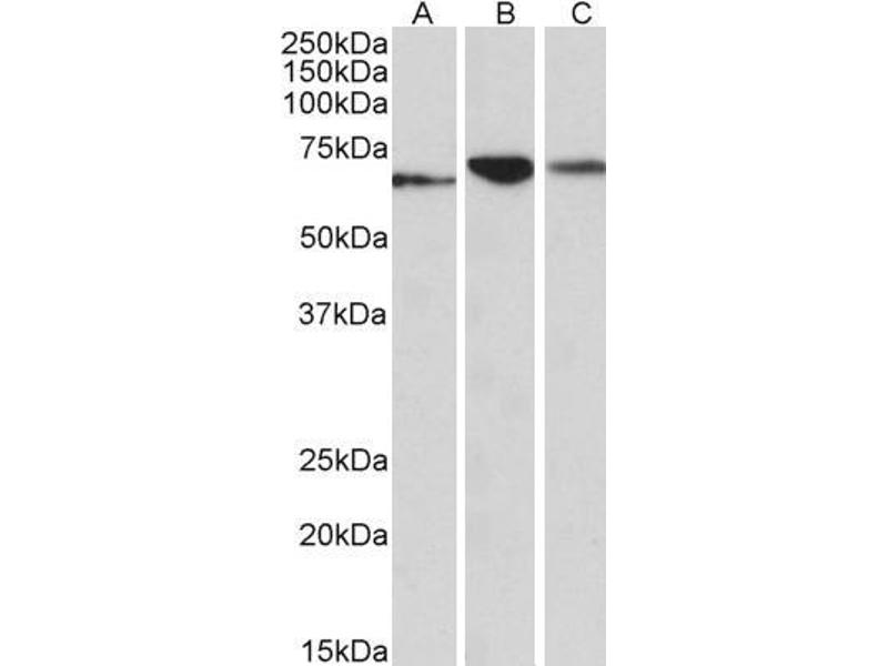 Western Blot: Approx 65 kDa band observed in Human, Mouse and Rat Pancreas lysates (calculated MW of 58.2 kDa according to NP_006840.2). Recommended concentration: 0.01-0.03 μg/mL.