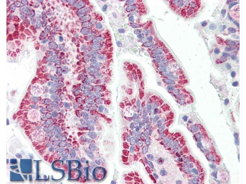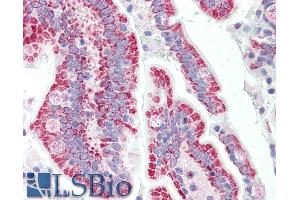 Immunohistochemistry: Paraffin embedded Human Small Intestine. Recommended concentration: 5 μg/mL.