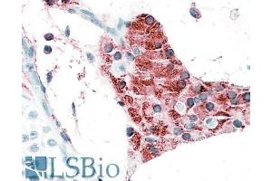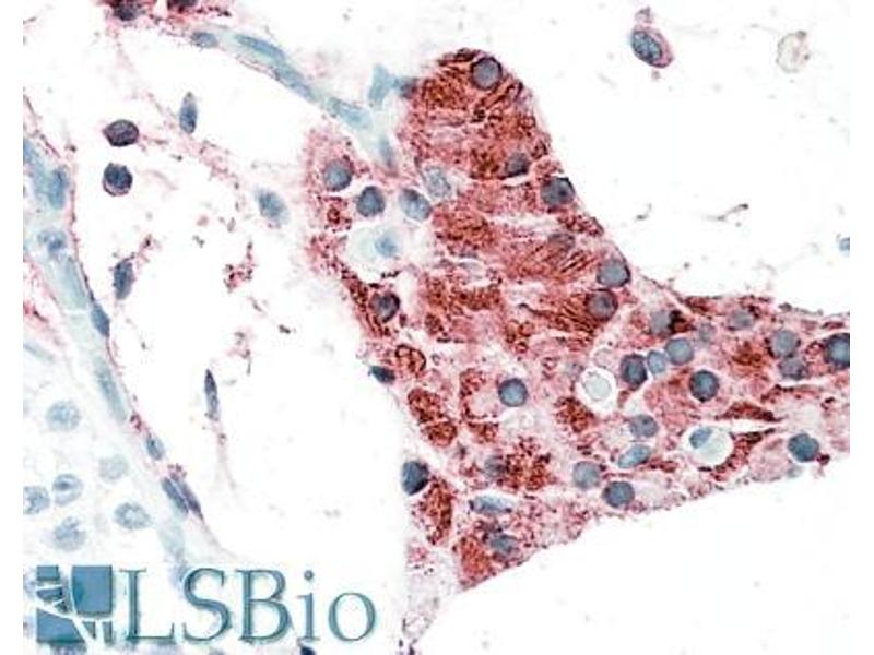 Immunohistochemistry: In paraffin embedded Human Testis shows cytoskeletal staining in interstitial (Leydig) cells. Recommended concentration: 5-10 μg/mL.