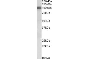Western Blot: Approx 100 kDa band observed in Human Brain (Cerebellum) lysates (calculated MW of 102 kDa according to NP_000818.2). Recommended concentration: 0.1-0.3 μg/mL. Primary incubation was 1 hour.