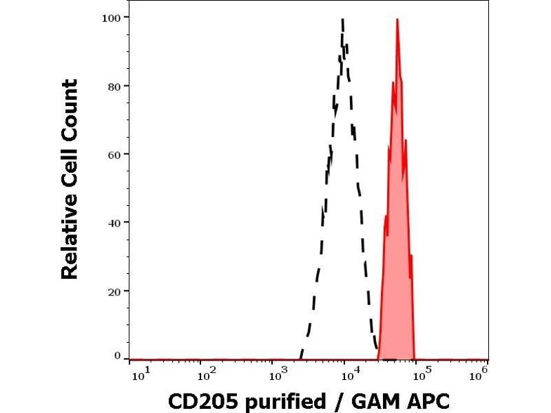 The mouse monoclonal antibody HD30 recognizes an extracellular epitope of CD205, an approx. 200 kDa C-type lectin transmembrane protein of the MMR (macrophage mannose receptor) family, expressed at high levels on dendritic cells and thymic epithelial cells, and at low levels on lymphocytes, NK cells and monocytes.
