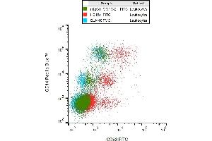 - Flow cytometry: The reagent is designed for analysis of human blood cells using 4 μL reagent / 100 μL of whole blood or 106 cells in a suspension. The content of a vial (0.4 ml) is sufficient for 100 tests.