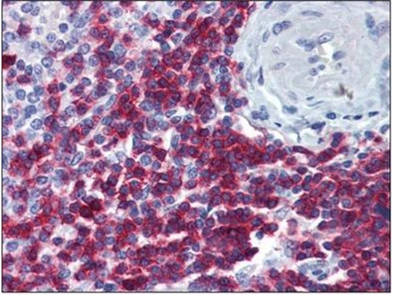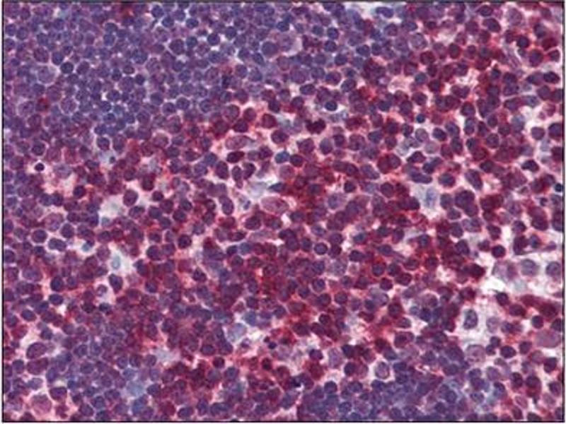 CD3 consists of five different polypeptide chains (designated as gamma, delta, epsilon, zeta, and eta). The CD3 complex is closely associated at the lymphocyte cell surface with the T cell antigen receptor (TCR). It is involved in signal transduction to the T cell interior following antigen recognition, which culminates in cytokine release, cellular proliferation. CD3 antigen is a highly specific marker for T cells, and is present in majority of T cell neoplasms.Synonyms: CD3 zeta chain, T-cell receptor T3 zeta chain, T-cell surface glycoprotein CD3 zeta chain, T3Z, TCRZ