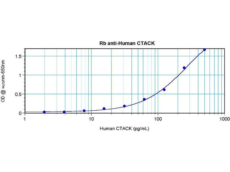 CTACK is a keratinocyte-derived CC chemokine which signals through the CCR10 receptor. Both CTACK and CCR10 are expressed in normal and irritated epithelial cells. CTACK selectively attracts CLA+ T-cells and directs them into the skin. CTACK contains the four highly conserved cysteine residues present in most CC chemokines. The mature protein contains 88 amino acid residues.Synonyms: C-C motif chemokine 27, CC chemokine ILC, CTACK, Cutaneous T-cell-attracting chemokine, IL-11 R-alpha-locus chemokine, ILC, SCYA27, Skinkine, Small-inducible cytokine A27
