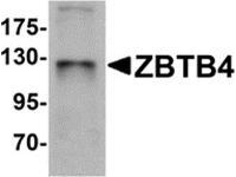 The ZBTB family of proteins is comprised of diverse zinc finger proteins that also contain a BTB (BR-C, ttk and bab) domain. Similar to Kaiso, a zinc-finger containing protein that can bind methylated CpGs, ZBTB4 can also bind methylated DNA and repress transcription. ZBTB4 has been shown to associate with the Sin3/histone deacetylase co-repressor and repress expression of P21CIP1 as part of a heterodimeric complex with Miz1. In cultured cells, depletion of ZBTB4 promotes cell cycle arrest in response to p53 activation and suppresses apoptosis through regulation of P21CIP1, suggesting that ZBTB4 is a critical determinant of the cellular response to p53 activation. HIPK2, a kinase that is involved in cellular proliferation and survival, phosphorylates and down-regulates ZBTB4 under normal cell growth conditions, this degradation increases with DNA damage.Synonyms: KAISO-L1, KAISO-like zinc finger protein 1, KIAA1538, Zinc finger and BTB domain-containing protein 4
