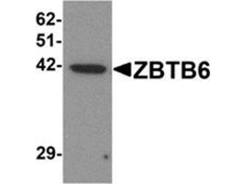 The ZBTB family of proteins is comprised of diverse zinc finger proteins that also contain a BTB (BR-C, ttk and bab) domain. ZBTB6, also known as ZNF482, is highly expressed in brain. While little is known about ZBTB6, other ZBTB proteins, such as ZBTB4 bind methylated DNA and repress transcription. Another ZBTB family member, ZBTB5, also acts as a transcriptional repressor, and can interact with co-repressor histone deacetylase complexes such as BCoR, NCoR, and SMRT via its POZ domain, suggesting that ZBTB6 may also act as a transcriptional repressor.Synonyms: ZID, ZNF482, Zinc finger and BTB domain-containing protein 6