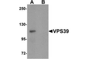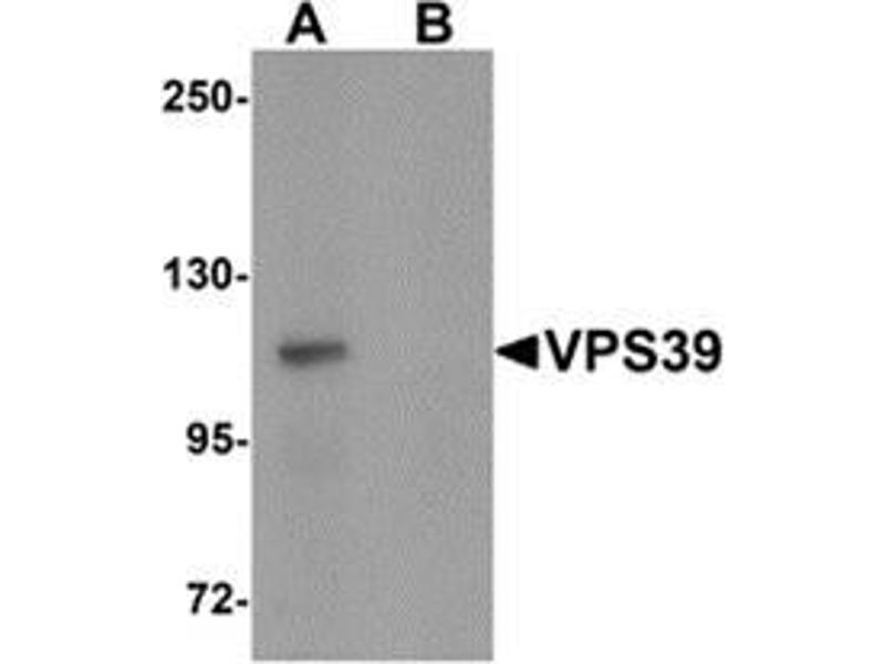 VPS39 is the mammalian homolog of the yeast vacuolar protein VAM6, that in mammals, promotes lysosome clustering and fusion in vivo. VPS39 is also thought to modulate the TGF-b response by coupling the TGF-b receptor complex to the Smad pathway. Similar to the related protein TRAP1, the VPS39 protein is essential for early embryonic development, with mice lacking VPS39 dying at or before E6.5.Synonyms: KIAA0770, VAM6, Vam6/Vps39-like protein