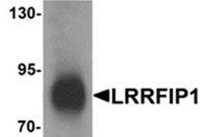This antibody detects LRRFIP1 at C-term. LRRFIP1 antibody is predicted to not cross-react with other LRRFIP family members. Three isoforms of LRRFIP1 are known to exist, this antibody will only recognize the two longer isoforms.