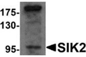 Salt-inducible kinase 2 (SIK2), like its closely related homolog SIK1, belongs AMPK subfamily of the Ser/Thr protein kinase family and negatively regulates CRE-binding protein (CREB) activity by phosphorylating the CREB-specific coactivator transducer of regulated CREB activity (TORC). SIK2 is thought to be part of a signaling cascade that regulates the expression and activity of the insulin-induced genes PGC-1?alpha and UCP-1 in brown adipocytes, impairment of which has been implicated in obesity and insulin resistance in human and animal models. SIK2 has also been reported as a key regulator for neuronal survival after ischemia, suppressing CREB-mediated gene expression after oxygen-glucose deprivation.Synonyms: QIK, Qin-induced kinase, SIK-2, SNF1LK2, Salt-inducible protein kinase 2, Serine/threonine-protein kinase SIK2, Serine/threonine-protein kinase SNF1-like kinase 2