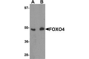 FOXO4 is a ubiquitously expressed protein member of a subfamily of the forkhead homeotic gene family of transcription factors and shuttles between the cytoplasm and nucleus. FOXO transcription factors are key players of cell fate decisions, metabolism, stress resistance, tumor suppression and are regulated by growth factors, oxidative stress or nutrient deprivation. In the absence of PI3K/AKT activation, FOXO4 localizes in the nucleus where it functions as a transcription factor. FOXO4 can also be phosphorylated by JNK following induction of reactive oxygen species (ROS), resulting in transcriptional activation and the induction of a negative feedback mechanism to counteract the ROS. It is through this mechanism that FOXO4 is thought to sensitize cancer cells to doxorubicin-mediated toxicity.Synonyms: Fork head domain transcription factor AFX1, Forkhead box protein O4