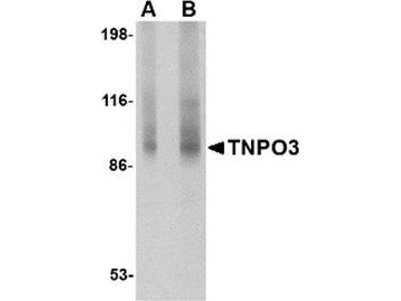 This antibody detects Transportin-3 (TNPO3) at N-term.