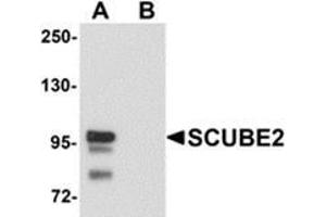 SCUBE2 is a member of a family of secreted glycoproteins that contain N-terminal EGF-like repeats and C-terminal cysteine-rich motifs and CUB domain and are expressed in embryonic neuroectoderm and vascular epithelium. SCUBE2 is a close homolog to SCUBE1 and can form a heterodimeric complex with SCUBE1. SCUBE2 is thought to participate in the Hedgehog signaling pathway by specifically interacting with Sonic Hedgehog (SHH) and the receptor PTCH1, enhancing the SHH signaling activity in the raft microdomains of the plasma membrane, and may thus play important roles in organ development and tumor progression.Synonyms: CEGP1, Signal peptide CUB and EGF-like domain-containing protein 2